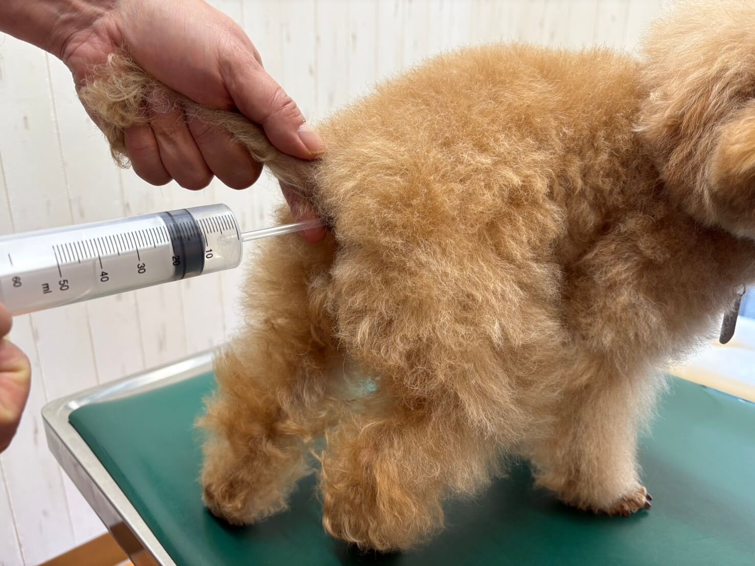 動物では肛門から直接オゾンガスを注入する注腸法が一般的で当院でもこの注腸法を行っております。
